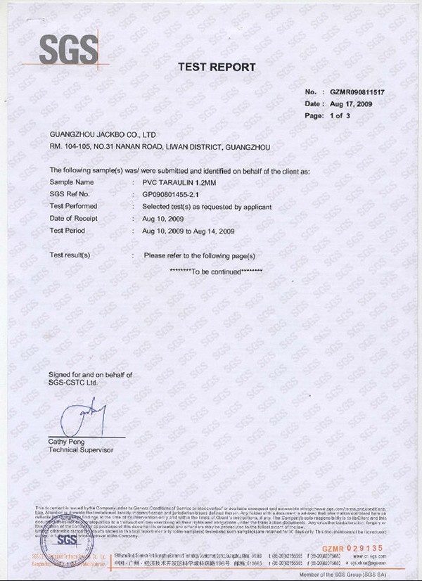 國家體育用品質量監督檢驗中心檢測報告(拆裝式泳池)